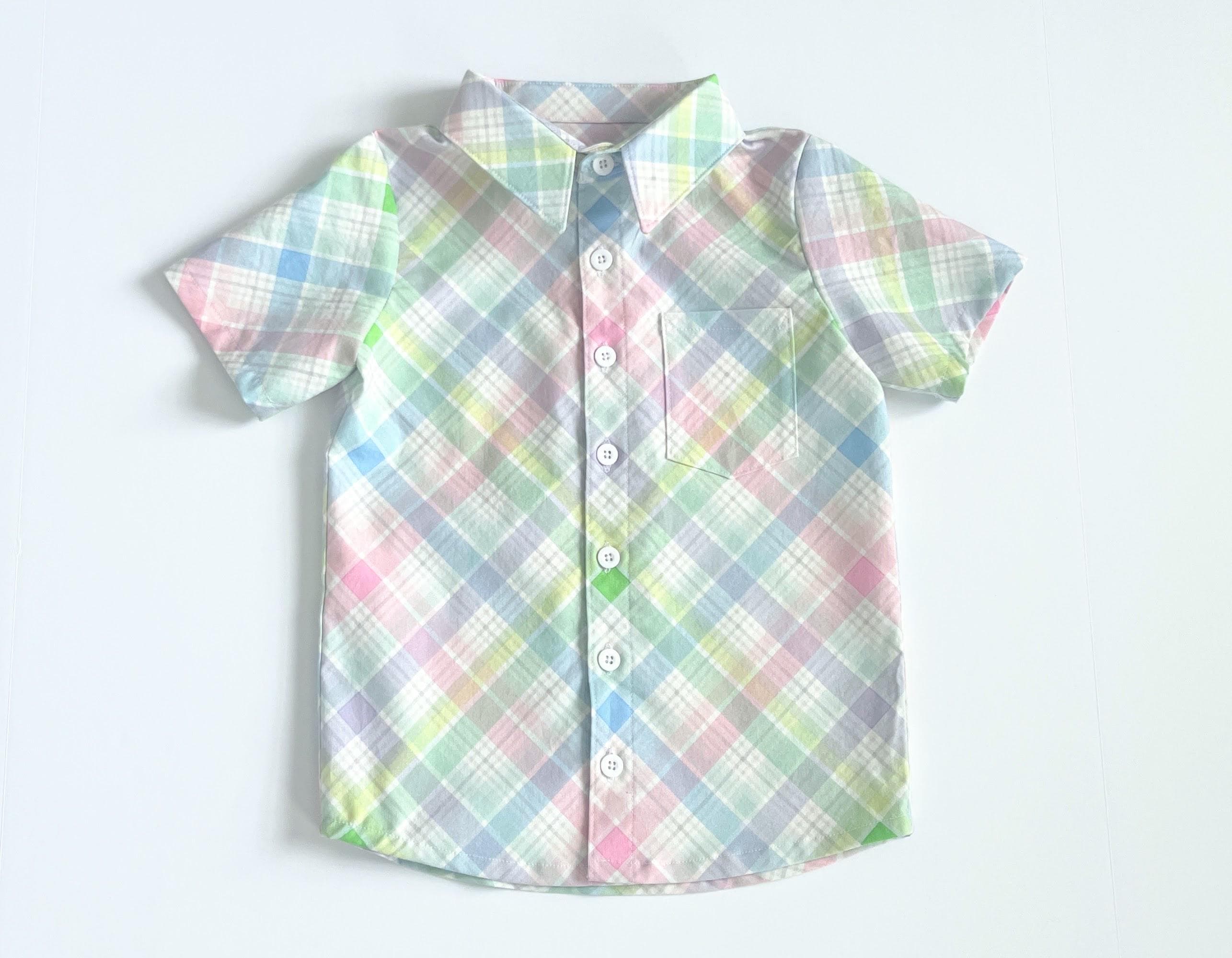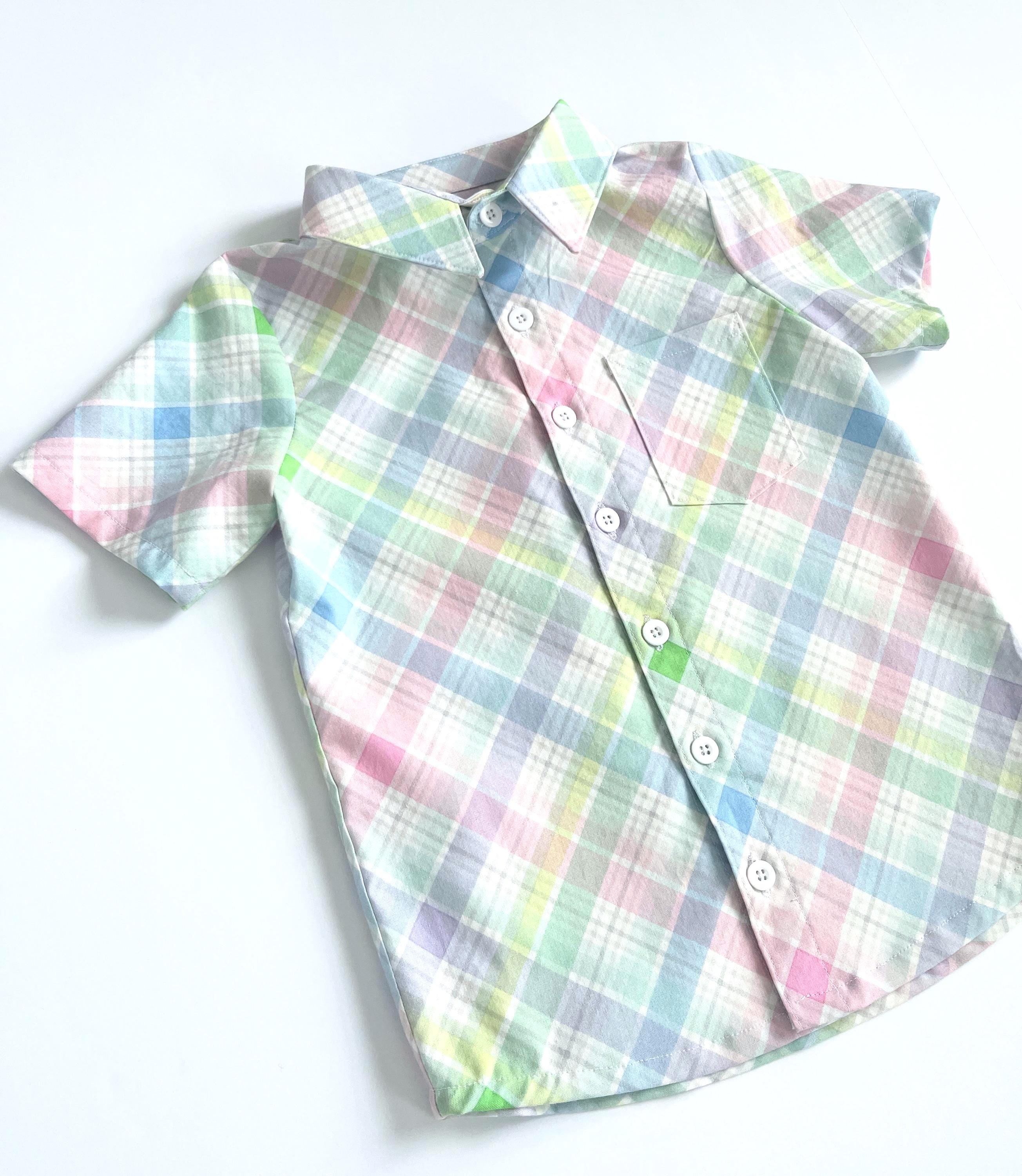 This Easter pastel plaid button-down is the perfect blend of classic charm and playful color. Designed for comfort and style, it features a soft watercolor-inspired palette of mint green, sky blue, lavender, and rosy pink, making it an ideal choice for family photos.