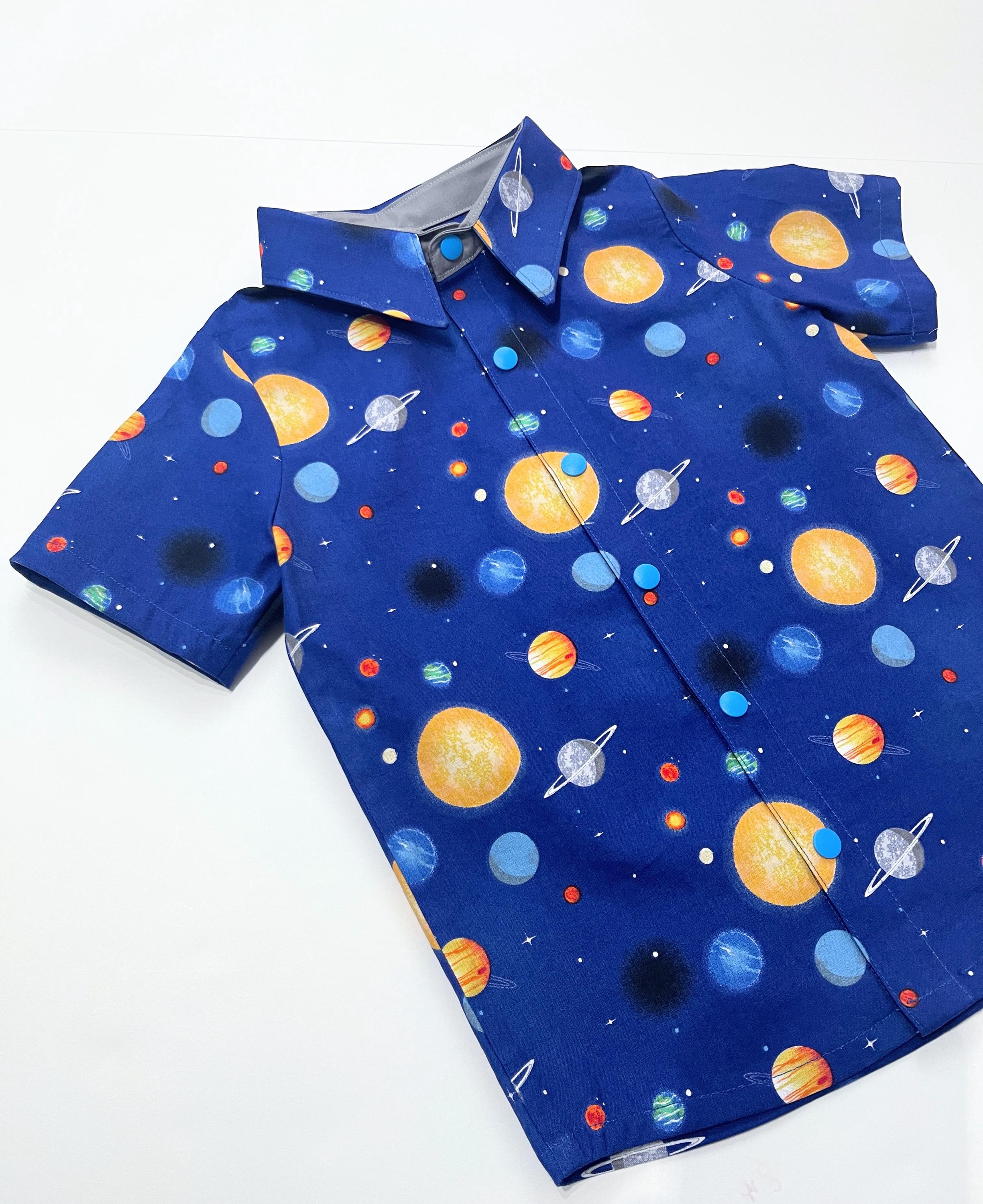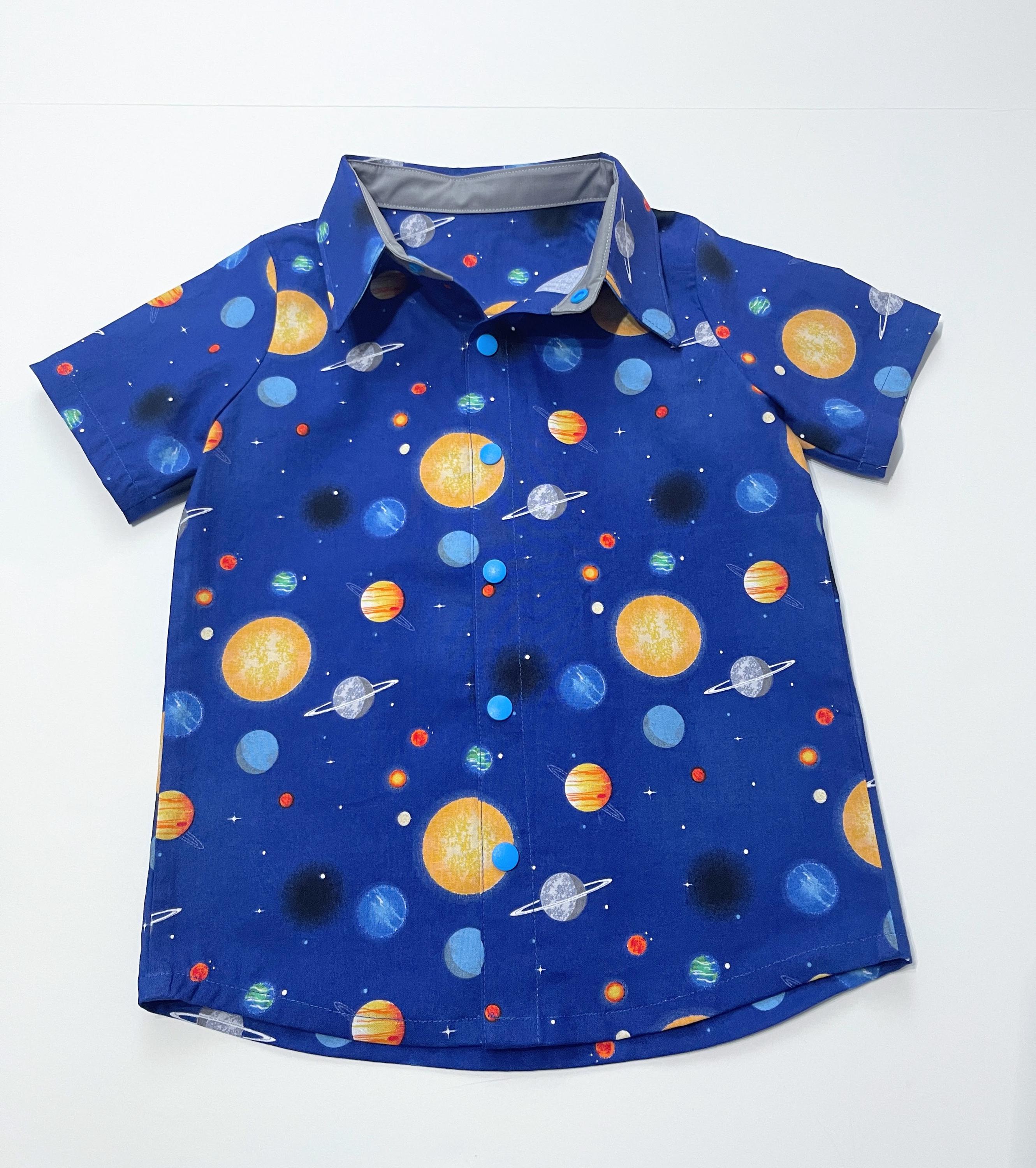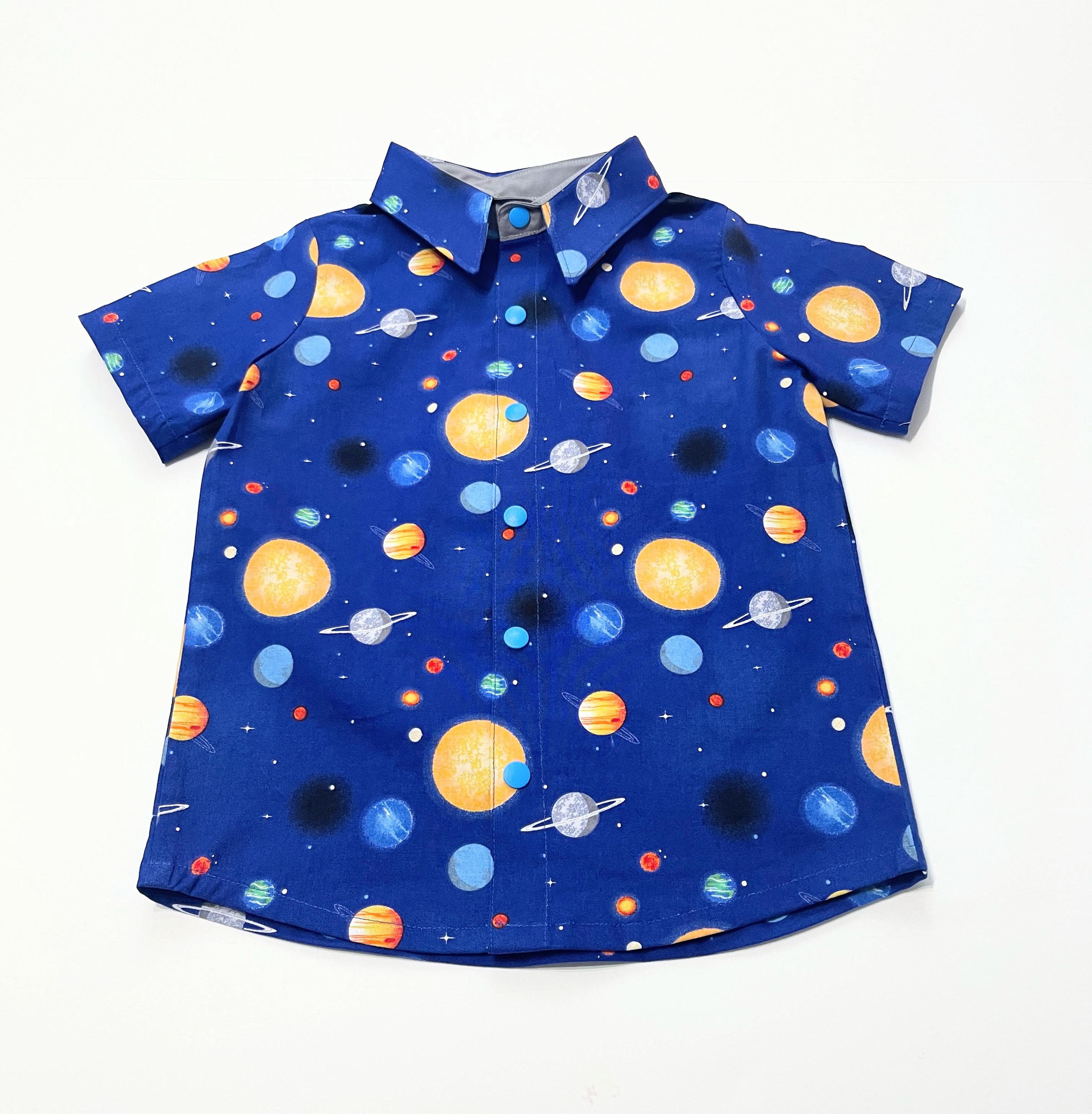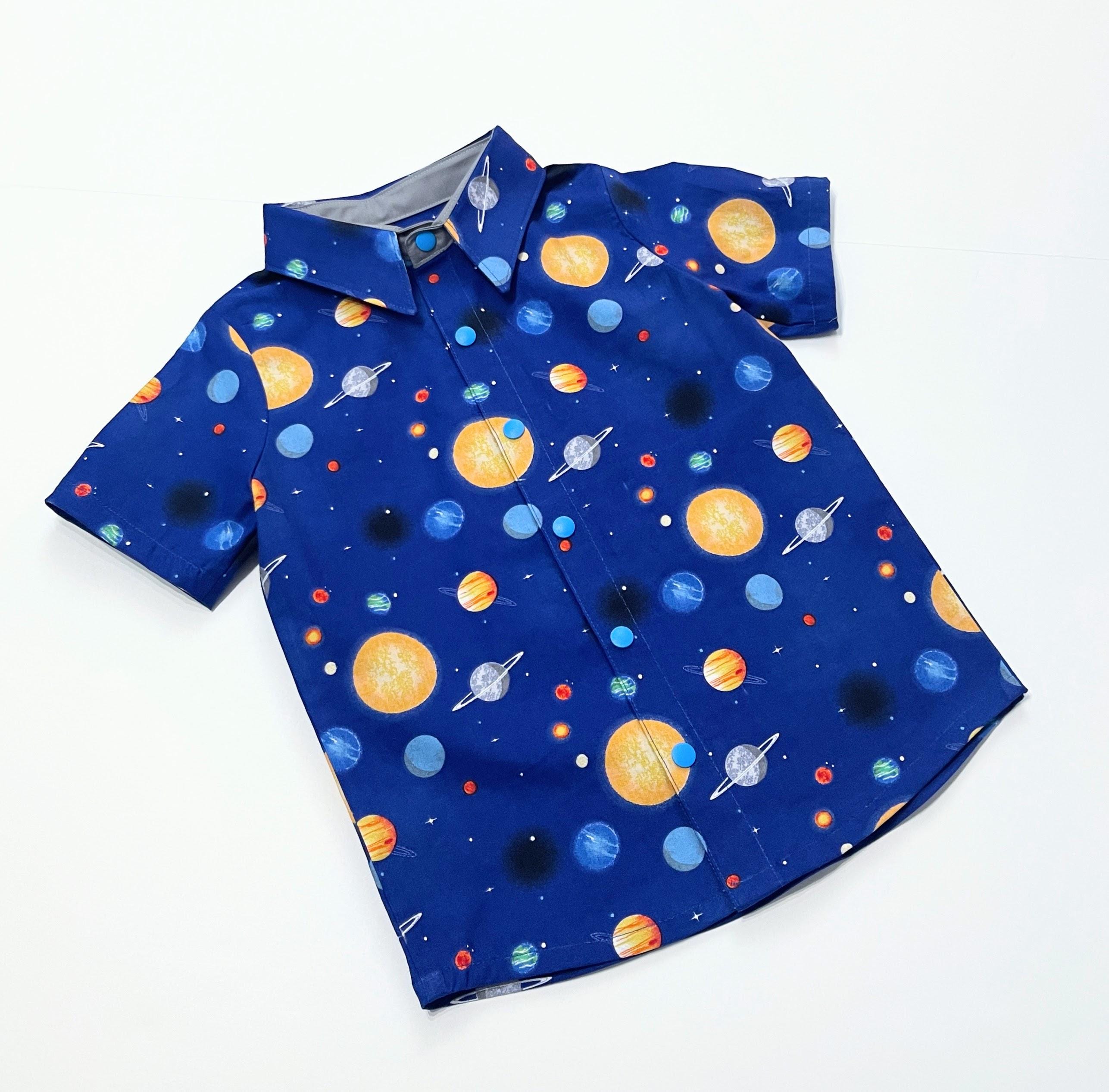 Blast off into style with our Space Planet Short-Sleeved Collared Shirt for Boys—a cosmic blend of comfort and cool that’s out of this world! Designed with a stellar space print, this shirt makes playdates and parties a total orbit of fun, setting your little astronaut apart from the crowd.