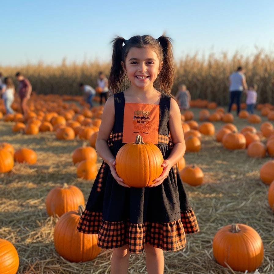 Get your little one ready for all the fall festivities with this adorable "Cutest Pumpkin in the Patch" dress from Lilies & Lizards LLC! Perfect for pumpkin patch visits, hayrides, fall festivals, and Thanksgiving gatherings, this unique dress combines classic autumn charm with playful details.